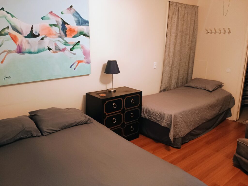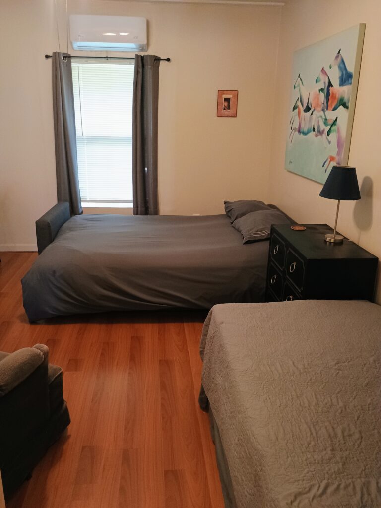 Private/Couples Room (one double bed) plus a twin bed with private bath. Fenced yard